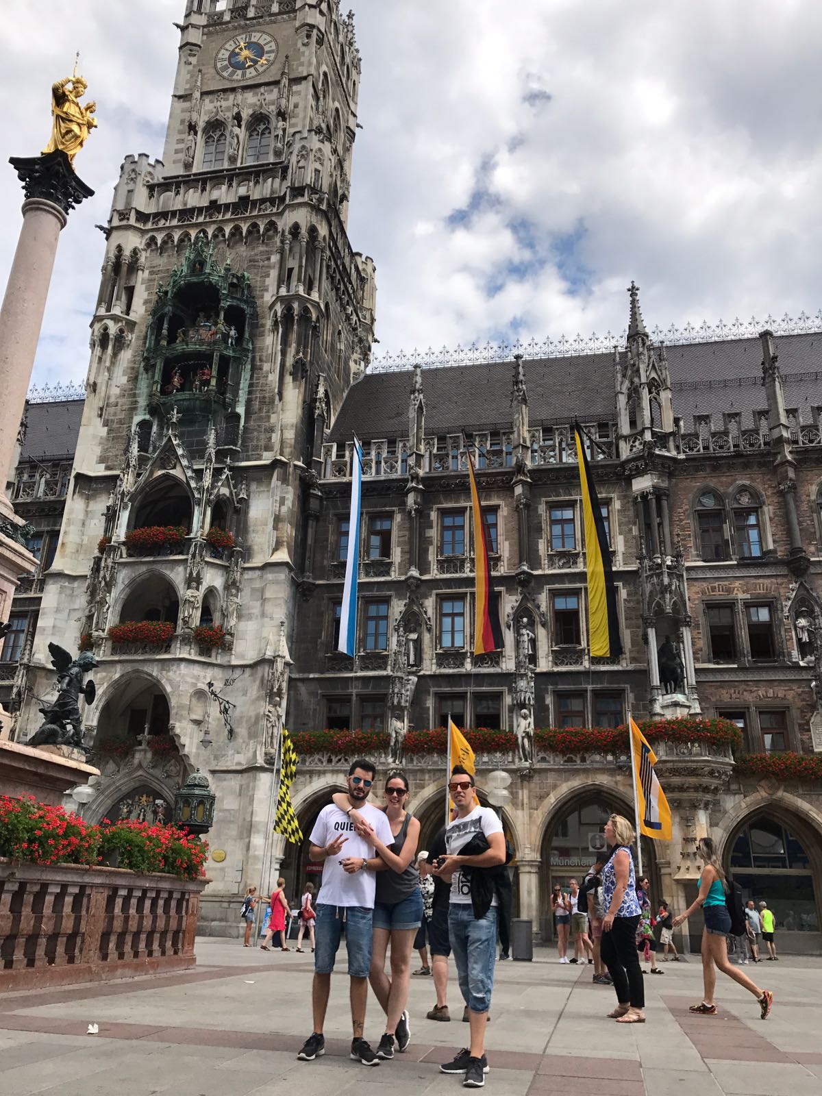 Tras las emociones y comernos nuestras primeras salchichas alemanas acompañadas de una buena cerveza, nos dirijimos a Munich para pasar la noche allí. Aunque llegamos relativamente pronto por la tarde, nos limitamos a pasear por los alrededores y encontrar un buen sitio para cenar. El día siguiente, alquilaríamos unas bicicletas para poder recorrer la ciudad más cómodamente y aprovechando un tiempo soleado que nos respetó todo el viaje. Pasamos gran parte de la tarde en un parque por el que cruza el rio Eisbach y donde nos bañamos en calzones y pudimos ver como los alemanes hacen surf aprovechando las corrientes que se producen en varias zonas.